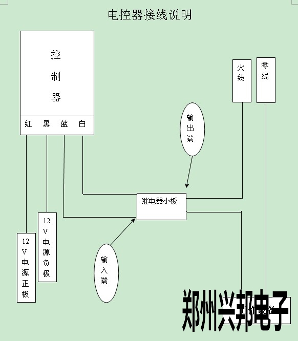 1、繼電器小板接線柱標(biāo)有12V+的的一端是輸入端 分別接控制器的藍(lán)線和白線