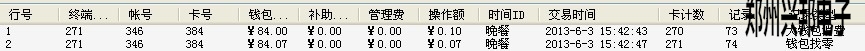 4.消費卡第一次刷卡會扣掉一個費率的錢,再次刷卡會找零,找零的記錄如下圖所示