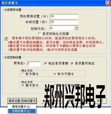 4、最后點擊“費率設置/控制設置卡”按鈕選擇“控制設置卡”點擊確定完成就可