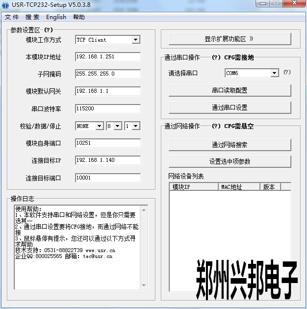 5、模塊自身端口取所填本地ip地址的最后一空的數(shù)字,比如所填IP為192.168.1.251那么該端口就是10251。