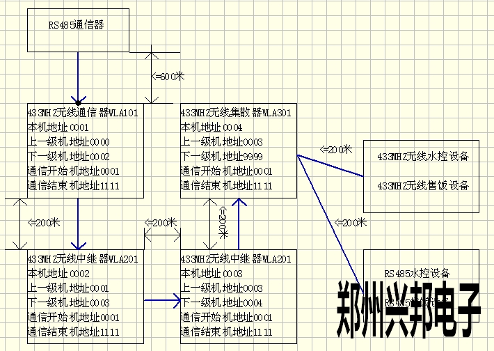 2、一個(gè)433MHZ無(wú)線通信器(WLA001)的無(wú)線覆蓋范圍為直經(jīng)400米(空曠地區(qū));只要在收發(fā)的范圍內(nèi),可連接的終端設(shè)備的臺(tái)數(shù)理論上沒(méi)有限制;地址號(hào)9998、9999,終端設(shè)備不可用,系統(tǒng)使用;