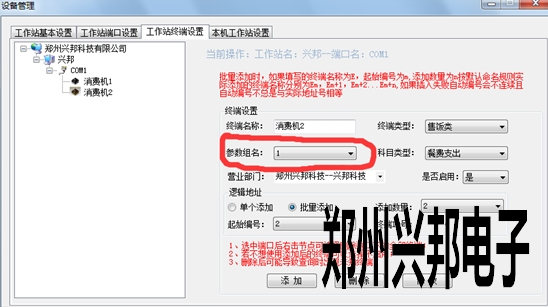 終端參數(shù)類型的選擇:打開設(shè)備設(shè)置,在工作站終端設(shè)置里,添加終端里可以選擇參數(shù)組名,或者添加終端后也可以修改選擇的參數(shù)組名。