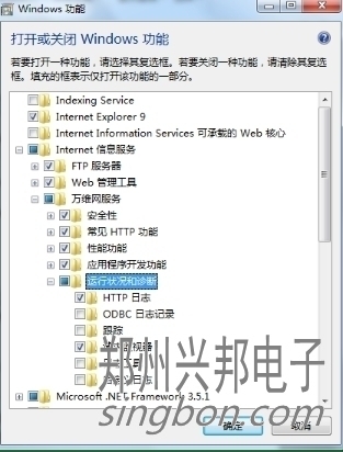 進入Windows功能窗口,然后看到internet信息服務選項,然后按照圖中設置即可,Ps:打√的選項下面為全選,方圈的下面按照圖中打√的選擇即可。