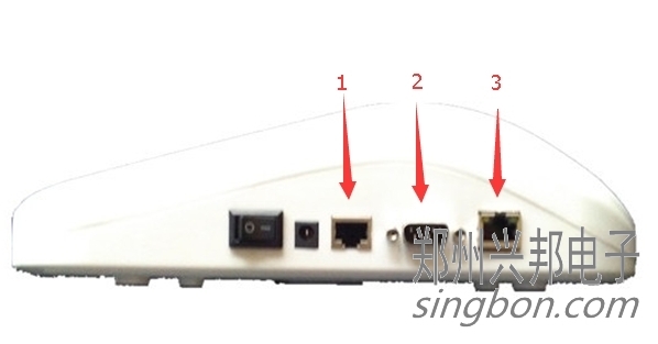 圖3 升級機側(cè)面圖(注:1為水晶頭插口;2為九針母頭插口,3為網(wǎng)線插口)